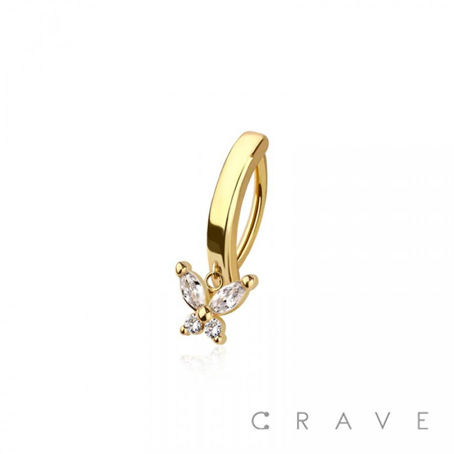 316L SURGICAL STEEL MULTI CZ BUTTERFLY RAIL CLICKER BELLY RING